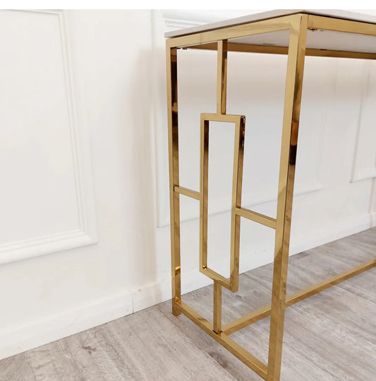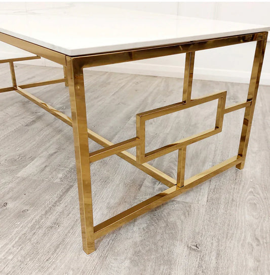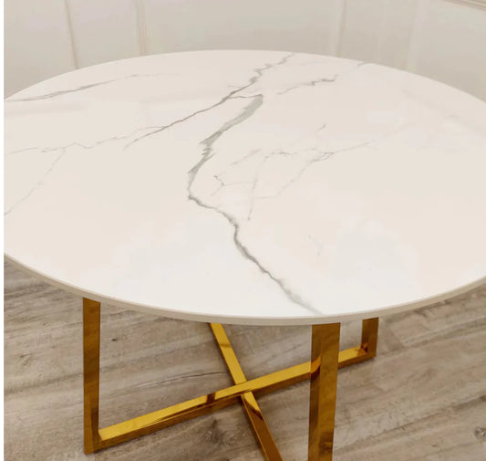 Juno Gold 90cm Round Dining Table With Polar White Sintered Stone Top