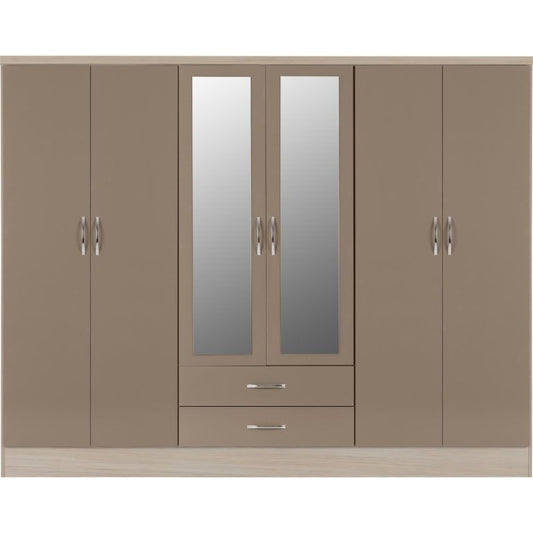 Nevada 6 Door 2 Drawer Mirrored Wardrobe