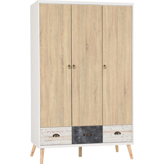 Nordic 3 Door 3 Drawer Wardrobe