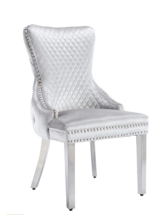 Xavia Light Grey Table With Majestic Dark Grey Lion Knocker Chairs