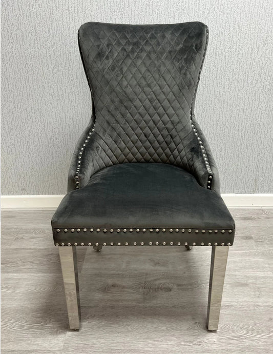 Xavia Light Grey Table With 4 Sofia Dark Grey Lion Knocker Chairs