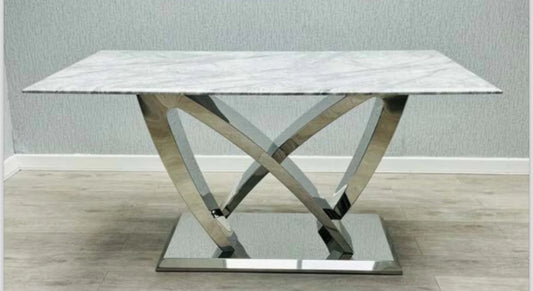 California Marble Dining Table Grey + Majestic Dining Chairs Lion Knocker