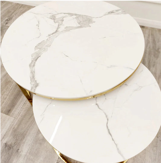 Cato Nest Of 2 Short Round Coffee Tables Stone Tops