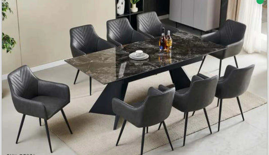 Louis 150cm/180cm/200cm Grey Marble Dining Table With set of Lion Knocker Velvet Dining Chairs, Dark Grey