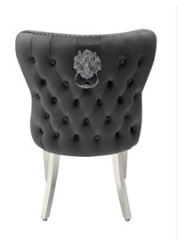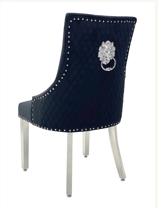 Louis Black Marble Dining Table With Black Sofia Chairs With Lion Knocker