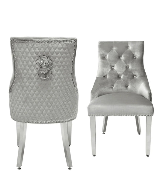 Rose 180cm Light Grey Marble Dining Table With Lion Knocker Chairs