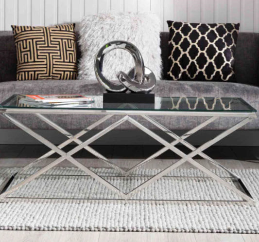 Cohen Steel Tubes And Clear Glass Coffee Table
