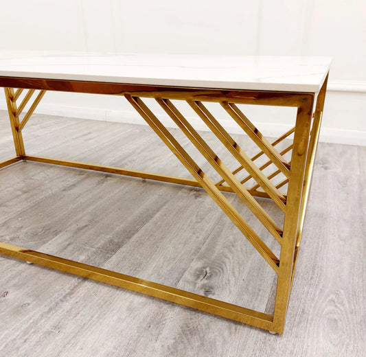 Zion Gold Coffee Table With Polar White Sintered Top